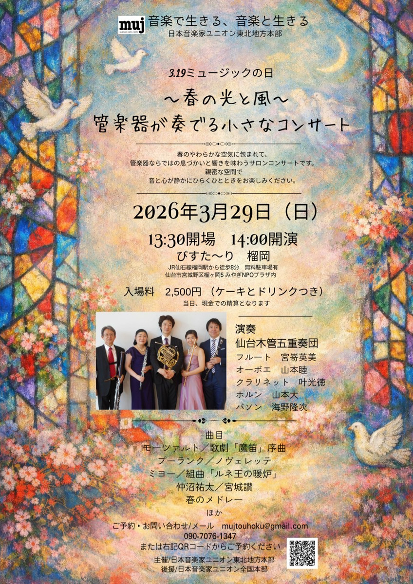 宮嵜英美(Fl)山本睦美(Ob)叶光徳(Cl)山本大(Hr)海野隆次(バソン)